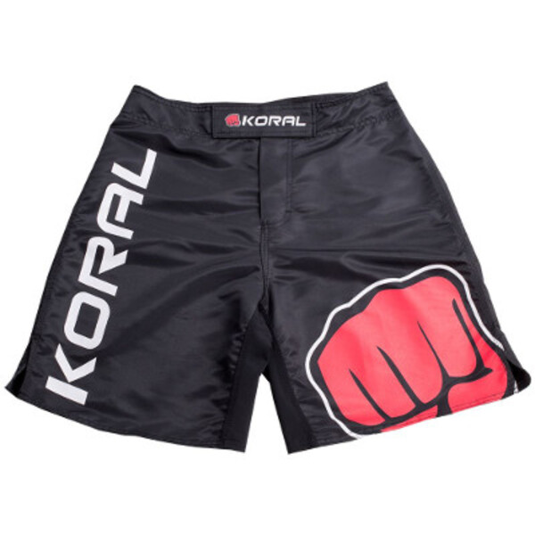 KORAL FIGHT CO. コラルのファイトショーツ Fight Pro Model 色:黒 本体には最新の強度と柔軟性を併せ持つ光沢のある生地を使用し、内股部分とサイドにはは17%伸縮素材を採用することにより、軽さと自然な履き心地を実現。ウエストはマジックテープで止めるタイプ。迫力のロゴプリントはシルクプリント。内股の部分は伸縮素材で動きやすいです。解剖学に基づいたカットがアスリートのパフォーマンスを妨げない。ストリートウェアやスポーツウェアとしてもお薦め。 * ブラジリアンサイズなので日本サイズより1~1.5サイズ程大きめです。少し大きい場合は紐で調節可能。日本規格でLサイズの方はブラジル(BR)規格ではMサイズ又はSサイズがお薦め。 実寸サイズ XS-size ウエスト幅:37cm、着丈49cm、股下21cm S-size ウエスト幅:42cm、着丈48cm、股下22cm M-size ウエスト幅:42cm、着丈49cm、股下23cm L-size ウエスト幅:46cm、着丈51cm、股下25cm XL-size:ウエスト幅:47cm、着丈52cm、股下26cm 平置きにて採寸しました。個体差が多少ございますことご了承ください。