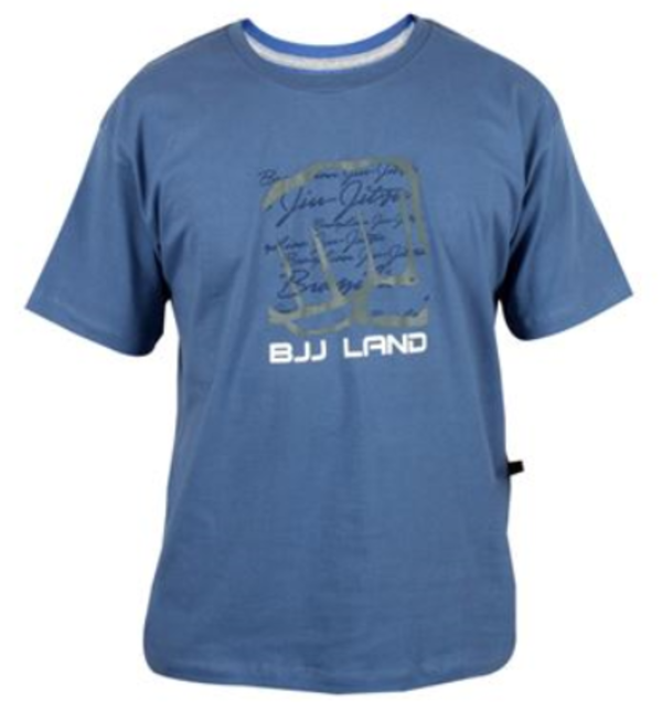 KORAL コラルのCamiseta BJJ Land 2 モデルTシャツ 色:ジーンズブルー Jeans ブラジル製 綿100% ブラジルのサイズなので日本のサイズより少し大きめです。 平置き実寸サイズ Sサイズ:肩幅:約52cm、着丈:約65cm、胸幅:約52cm、身幅:約50cm