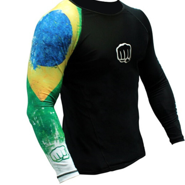 コラル KORAL 長袖ラッシュガード Long-sleeve Rashguard 国旗シリーズ ブラジルモデル Country Series Brazil Model 色/Color:黒/Black *袖のロゴは昇華プリントなので、剥がれたり割れたりしません。 *Adopting Sublimation Printing on the sleeve so it won't crack, fade, or come off. すそ部分はゴムが入っています。紐は付いていません。 この商品は在庫限りとなります。 *洗濯の際のご注意…型崩れや劣化を防ぐために手洗いをおすすめしておりますが、やむなく洗濯機をご利用の際には、ラッシュガードを裏側にして洗濯網などに入れて洗濯してください。漂白剤や乾燥機のご利用は控えてください。 *Hand wash is recommended for longer life. If using a washing machine, turn the rashguard inside out and put it in washing bag(net). Do not use bleach or dryer.