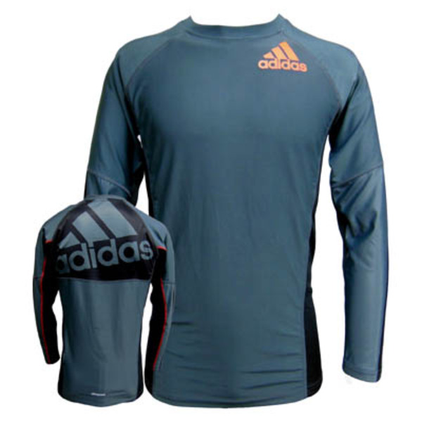 adidas Rashguard Long Sleeve [Big Logo Light Model] 色/Color:ダークグレー/黒 DarkGrey/Black 素材/Material: ポリエステル Polyester 85%/ポリウレタン Spandex 15% ポイント/Point: 5% *アディダス総合格闘技/柔術部門ラッシュガード。 *クライマクール機能採用。 *背中には特大アディダスロゴ、両袖にアディダスストライプ、左胸にもアディダスロゴ。 *練習中のスレなどから肌を守りながら軽くてさらに動きやすくなりました。 *道着の下などに着用するのに最適。 *このBig Logo Light ラッシュガードは、より素早く動けるように生地や型が設計され、または制限なくあらゆる動きを可能にするために開発されたため、インナーとしてご着用の場合は大丈夫ですが、単体でご着用頂く場合は、汗をかくと少し透ける可能性がございます。気になる方は、ご着用の際スポーツ系インナーをご着用ください。 *Rashguards for martial arts/combat sports from adidas MMA & BJJ lines. *CLIMACOOL function. *Massive adidas logo on upper back. CLIMACOOL(クライマクール)の機能を搭載。 CLIMACOOLとは吸汗速乾性に加え優れた通気性をプラスし、特に発汗性の高い部位に通気性の高い素材を配置することにより、高いクーリング性能を実現した、刻々と変化する状況においても常に快適な衣服内環境を提供し、アスリートのパフォーマンスアップをサポートするアディダス独自のテクノロジーです。 The fabric used in a CLIMACOOL product pulls sweat away from the body and increases micro-ventilation through strategically placed mesh panels of the key areas of heat and sweat generated by a player's body. Advanced technologies were then used to address the needs of each area, in varying climactic conditions. ポリエステルとスパンデックスの混合素材で作られ高い柔軟性と速乾性を持つ生地が優れた着心地を提供。どの方向にも伸縮性を持っているのでトレーニングなどにおける動きやすさを実現しています。各必要部分にメッシュ素材が使われており通気性も確保。動きやすさと着心地の良さを両立したラッシュガードです。 Made of polyester: spandex mixed materials with CLIMACOOL for a better flexibility and quick-drying properties for a better comfort. Slightly stretchable in all directions, this fabric allows an improved mobility in any direction at training. Eyelet mesh fabric located under the arms and on the side panels for air ventilation. This rashguard construction has been designed to provide an optimized liberty of movements, in order to achieve an optimal level of performance at training. 実寸サイズ XSサイズ-着丈:60cm、裄:71cm、胸幅:42cm、身幅:39cm、裾幅:40cm、袖口幅:8cm Sサイズ-着丈:62cm、裄:72cm、胸幅:44cm、身幅:41cm、裾幅:41cm、袖口幅:8cm Mサイズ-着丈:64cm、裄:74cm、胸幅:46cm、身幅:43cm、裾幅:43cm、袖口幅:8cm Lサイズ-着丈:66cm、裄:75cm、胸幅:48cm、身幅:46cm、裾幅:45cm、袖口幅:9cm XLサイズ-着丈:68cm、裄:76cm、胸幅:51cm、身幅:48cm、裾幅:47cm、袖口幅:10cm (平置きにして測りました。伸縮素材です。手作りのため多少の個体差がございます事ご了承願います。裄は首後ろ中心~袖先を計測。)
