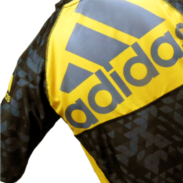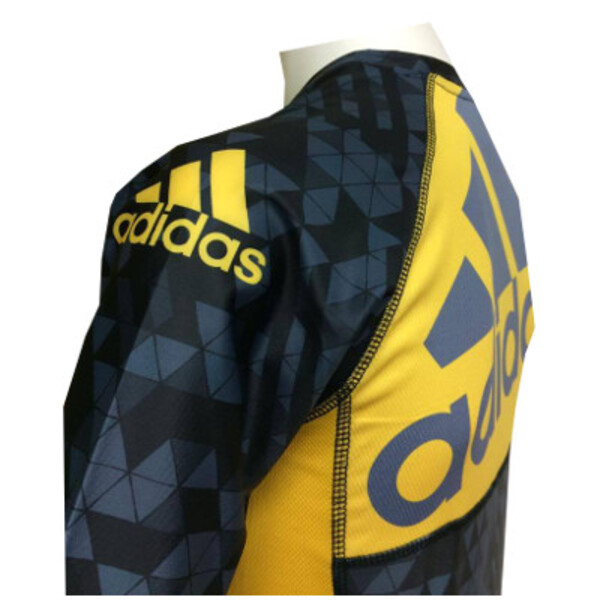 5,920円⇒2,900円に!!アディダス 半袖ラッシュガード Transitionモデル adidas Rashguard Short Sleeve [Transition Model] 色/Color:ダークグレー/黄 Dark Grey/Eqt Yellow 素材/Material: ポリエステルPolyester 85%/スパンデックス Spandex 15% ポイント/Point: 5% *アディダス総合格闘技/柔術部門ラッシュガード。 *クライマクール機能採用。 *背中には特大アディダスロゴ、左肩にもアディダスロゴ。 *Rashguards for martial arts/combat sports from adidas MMA & BJJ lines. *CLIMACOOL function *Massive adidas logo on upper back. CLIMACOOL(クライマクール)の機能を搭載。 CLIMACOOLとは吸汗速乾性に加え優れた通気性をプラスし、特に発汗性の高い部位に通気性の高い素材を配置することにより、高いクーリング性能を実現した、刻々と変化する状況においても常に快適な衣服内環境を提供し、アスリートのパフォーマンスアップをサポートするアディダス独自のテクノロジーです。 The fabric used in a CLIMACOOL product pulls sweat away from the body and increases micro-ventilation through strategically placed mesh panels of the key areas of heat and sweat generated by a player's body. Advanced technologies were then used to address the needs of each area, in varying climactic conditions. ポリエステルとスパンデックスの混合素材で作られ高い柔軟性と速乾性を持つ生地が優れた着心地を提供。どの方向にも伸縮性を持っているのでトレーニングなどにおける動きやすさを実現しています。各必要部分にメッシュ素材が使われており通気性も確保。動きやすさと着心地の良さを両立したラッシュガードです。 Made of polyester: spandex mixed materials with CLIMACOOL for a better flexibility and quick-drying properties for a better comfort. Slightly stretchable in all directions, this fabric allows an improved mobility in any direction at training. Eyelet mesh fabric located under the arms and on the side panels for air ventilation. This rashguard construction has been designed to provide an optimized liberty of movements, in order to achieve an optimal level of performance at training. 実寸サイズ Sサイズ-着丈:約64cm、裄:約45cm、胸幅:約44.5cm、身幅:約43cm、裾幅:約43cm、袖口幅:約12.5cm Lサイズ-着丈:約66.5cm、裄:約47.5cm、胸幅:約48cm、身幅:約46cm、裾幅:約46cm、袖口幅:約13.5cm (平置きにして測りました。伸縮素材です。手作りのため多少の個体差がございます事ご了承願います。裄は首後ろ中心~袖先を計測。)