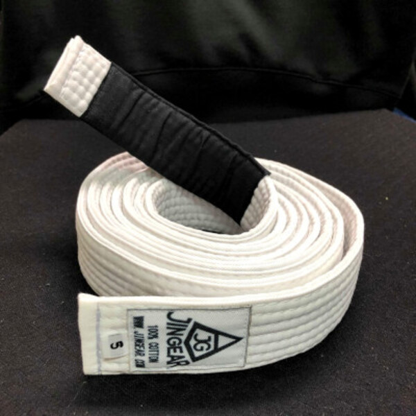 JIN GEAR Bjj White Belt Entry (White Label) Model これから柔術を始められる方向きの柔らかめ、軽い帯です。 帯長さ:A1(4号)-約260cm、A2(5号)-約275cm、A3(6号)-約290cm 洗濯により多少縮みがございます。 *帯の中の詰め物がうっすらと透けて見える部分がございます。詳細写真をご確認くださいますようお願いします。