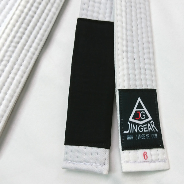 JIN GEAR Bjj White Belt Entry (Black Label) Model これから柔術を始められる方向きの柔らかめ、軽い帯です。 帯長さ:A1(4号)-約260cm、A2(5号)-約275cm、A3(6号)-約290cm 洗濯により多少縮みがございます。 *帯の中の詰め物がうっすらと透けて見える部分がございます。詳細写真をご確認くださいますようお願いします。