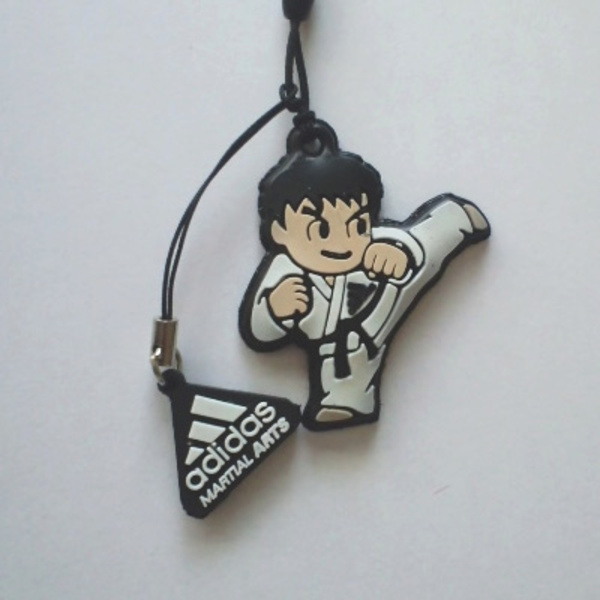 色:白道着x黒ラバーロゴ 携帯ストラップ (キック) adidas Martial Arts(adidas Combat)のラバータイプ携帯ストラップです。 キーホルダー・PC画面クリーナー・カーアクセサリーとしても使えます。 海外へのお土産や景品などに最適。