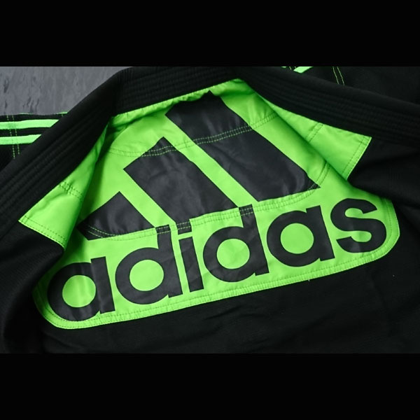 アディダス柔術着 コンテストモデル ヴァージョン3.0 adidas BJJ Gi Contest Model Ver.3.0 上着/Jacket: シングルウィーヴ/ Single weave 綿100% Cotton ズボン/Pants:リップストップ/Rip Stop 綿100% Cotton ズボンウエストひも/Waist drawstring: コードタイプ/Cord type 裏地ライナー/Inner:ポリエステル/Polyestel 防縮加工済み/Pre-shrunk 色/Color:黒・ソーラーライムライン/Black with Solar Lime stripes *帯は付いていません。 Belt not included. ポイント/Point: 5%! 国内送料無料!(沖縄・離島のぞく) Free Shipping! (on Domestic order excluding Okinawa and other islands.) *アディダス柔術衣のハイエンドモデル。 *高い動きやすさと耐久性を実現。 *肩のストライプと前の刺繍は贅沢な直接刺繍! *上着内側上部には滑らかな生地のインナー。 *前ヴァージョンより耐久性が20%UP。 *カラースティッチでデザイン性もアップ。 *パンツ全体、上着の襟やスリット部のパイピングに軽くて丈夫なリップストップ生地を採用。 *袖口や上着及びパンツの裾の内側もカラーロゴテープで強化及びデコレーション! *前下に大きいロゴと、パンツにアディダスロゴ刺繍(すそより15cm以上上の部分にあります) ※海外製のため縫製の荒い箇所がございます。練習でご着用頂く際には問題はございません。 *adidas High-end model BJJ gi. *High mobility and durability! *Rich embroidered stripes on shoulders! *Smooth inner on upper inside of the jacket. *+20% resistance than previous version. *Contrast color stitches. *Rip-stop material for pants, lapel, and pipping for lightness and durability. *Colored logo taping inside the sleeves and at the bottom of jacket and pants. *Adidas logos on the front and pants. サイズ目安表/Size Chart: A0: 159cm - 165cm A1: 165cm - 173cm A2: 173cm - 180cm (これらはあくまで目安です。) 実寸サイズ: A0上着-胸幅:約56cm、着丈:約74cm、裄:約76cm、袖口幅:約16.5cm A0ズボン-ウェスト幅:約52cm、ズボン丈:約92cm、股下:約70cm A1上着-胸幅:約58cm、着丈:約77cm、裄:約82cm、袖口幅:約17cm A1ズボン-ウェスト幅:約52cm、ズボン丈:約94cm、股下:約71cm A2上着-胸幅:約61cm、着丈:約80cm、裄:約85cm、袖口幅:約17cm A2ズボン-ウェスト幅:約54cm、ズボン丈:約101cm、股下:約75cm 柔術衣の重さーA0:約1320~1360g、A1:約1420~1460g、A2:約1590~1630g ハンドメイドの為、出来上がりサイズ・重さが多少前後する場合がございます。 *練習にご着用の場合は問題ございませんが試合に出場される場合は、各連盟・団体の道着規定に沿って出場することが必要であり、規定が各団体で違う場合もあり、その規定も随時変更になっている可能性がございますので、出場前に主催者にご確認されることをお勧め致します。 *この道着は、海外で製作されており、縫製が荒い(曲がっている、縫い幅が違う等)、縫い直しのある場所がある、製作時に付いたと思われる小さな汚れが付いている場合がございます。競技上問題が無い場合、または洗濯によりその汚れが薄くなるもしくは落ちると見込まれた場合は、ご返品、交換の対象外となることもございますことご了承願います。