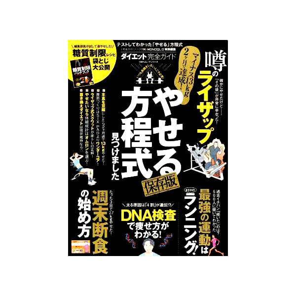 噂のライザップ やせる方程式見つけました 糖質制限ハンドブック付属 ページ数: 96ページ 判型: A4変形 ◆やせなかった、途中で諦めた、リバウンドした……失敗だらけのダイエットはもう古い! 他のダイエット本では絶対わからない、実際に身を張って分かった、8つのやせる方程式を大公開します! 【メイン特集】計4ヶ月覆面調査をしてわかったCMで気になるあのジムの真実を大公開! ライザップ徹底覆面調査完全自腹、計68万円を使って2年連続調査。 まさかのリバウンドの後に信じられないカラダに! 【特別袋とじ】絶対マネできる、絶対やせる 実際に2ヶ月で13kgやせた! 糖質制限ハンドブック付き 高いお金を出さなくても、やり方さえ知ればやせれる。 あのジムに通ってみつけた、「糖質制限のポイント」完全公開。 【第2特集】ラクしてやせるグッズを全調査! 結局、ホントにやせるのは一握り。 「するだけ」ダイエット大検証 SIX PAD、ワンダーコア、置き換えダイエット……。 辛い思いをしなくてもやせるグッズはあるのか、編集部員が検証! 【第3特集】2ヶ月に渡って500人に聞き込み! 古今東西の人気ダイエットを500人調査 あのダイエット、成功した? 失敗した? 流行っては廃れていくダイエット法の歴史。 どれが成功したのか、500人に聞いたNo,1はまさかのアレだった! 【小特集】他にも様々な「ダイエット」を検証! ■マイナス3kgの週末プチ断食を完全ガイド! ■DNA検査はダイエットの役にたつ? ■ダイエット効率をあげるサプリの正解は? ■遂にみつけた!「続けられる」体組成計はオムロンだった!