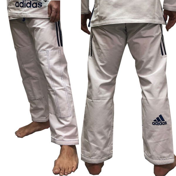 アディダス柔術衣パンツのみ コンテストモデル ヴァージョン3.0 adidas BJJ Gipants Contest Model Ver.3.0 ズボン/Pants:リップストップ/Rip Stop 綿100% Cotton ズボンウエストひも: コードタイプ Waist drawstring: Cord type 防縮加工済み/Pre-shrunk 色/Color:白 ネイビー/White with Navy Blue stripes ポイント/Point: 5%! *アディダス柔術衣のハイエンドモデル。 *高い動きやすさと耐久性を実現。 *肩のストライプと前の刺繍は贅沢な直接刺繍! *パンツの生地は、軽くて丈夫なリップストップ生地を採用。 パンツすそにアディダスロゴ刺繍がすそより上に15cm以内にありますのでIBJJFの規定ではご着用できませんので練習用としてご利用ください。 *試合に出場される場合は、各連盟・団体の道着規定に沿って出場することが必要であり、規定が各団体で違う場合もあり、その規定も随時変更になっている可能性がございますので、出場前に主催者にご確認されることをお勧め致します。 サイズ目安表/Size Chart: A0: 159cm - 165cm A1: 165cm - 173cm A2: 173cm - 180cm (これらはあくまで目安です。) 実寸サイズ: A0ズボン-ウェスト幅:約52cm、ズボン丈:約92cm、股下:約70cm A1ズボン-ウェスト幅:約52cm、ズボン丈:約94cm、股下:約71cm A2ズボン-ウェスト幅:約54cm、ズボン丈:約101cm、股下:約75cm ハンドメイドの為、出来上がりサイズが多少前後する場合がございます。 *この道着は、海外で製作されており、縫製が荒い(曲がっている、縫い幅が違う等)、縫い直しのある場所がある、製作時に付いたと思われる小さな汚れが付いている場合がございます。競技上問題が無い場合、または洗濯によりその汚れが薄くなるもしくは落ちると見込まれた場合は、ご返品、交換の対象外となることもございますことご了承願います。