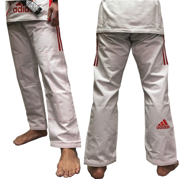 アディダス柔術衣パンツのみ コンテストモデル ヴァージョン3.0 adidas BJJ Gipants Contest Model Ver.3.0 ズボン/Pants:リップストップ/Rip Stop 綿100% Cotton ズボンウエストひも: コードタイプ Waist drawstring: Cord type 防縮加工済み/Pre-shrunk 色/Color:白 ショックレッド/White with Shock Red stripes ポイント/Point: 5%! *アディダス柔術衣のハイエンドモデル。 *高い動きやすさと耐久性を実現。 *肩のストライプと前の刺繍は贅沢な直接刺繍! *パンツの生地は、軽くて丈夫なリップストップ生地を採用。 パンツすそにアディダスロゴ刺繍がすそより上に15cm以内にありますのでIBJJFの規定ではご着用できませんので練習用としてご利用ください。 *試合に出場される場合は、各連盟・団体の道着規定に沿って出場することが必要であり、規定が各団体で違う場合もあり、その規定も随時変更になっている可能性がございますので、出場前に主催者にご確認されることをお勧め致します。 サイズ目安表/Size Chart: A0: 159cm - 165cm A1: 165cm - 173cm A2: 173cm - 180cm (これらはあくまで目安です。) 実寸サイズ: A0ズボン-ウェスト幅:約52cm、ズボン丈:約92cm、股下:約70cm A1ズボン-ウェスト幅:約52cm、ズボン丈:約94cm、股下:約71cm A2ズボン-ウェスト幅:約54cm、ズボン丈:約101cm、股下:約75cm ハンドメイドの為、出来上がりサイズが多少前後する場合がございます。 *この道着は、海外で製作されており、縫製が荒い(曲がっている、縫い幅が違う等)、縫い直しのある場所がある、製作時に付いたと思われる小さな汚れが付いている場合がございます。競技上問題が無い場合、または洗濯によりその汚れが薄くなるもしくは落ちると見込まれた場合は、ご返品、交換の対象外となることもございますことご了承願います。