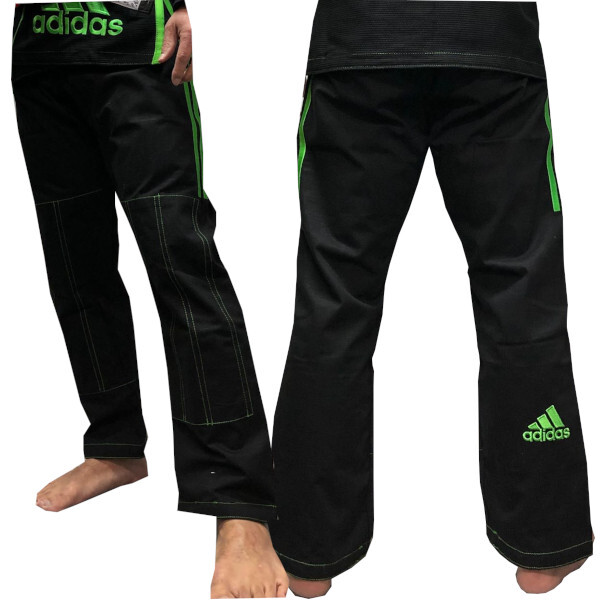 アディダス柔術衣パンツのみ コンテストモデル ヴァージョン3.0 adidas BJJ Gipants Contest Model Ver.3.0 ズボン/Pants:リップストップ/Rip Stop 綿100% Cotton ズボンウエストひも: コードタイプ Waist drawstring: Cord type 防縮加工済み/Pre-shrunk 色/Color:黒・ソーラーライム/Black with Solar Lime stripes ポイント/Point: 5%! *アディダス柔術衣のハイエンドモデル。 *高い動きやすさと耐久性を実現。 *肩のストライプと前の刺繍は贅沢な直接刺繍! *パンツの生地は、軽くて丈夫なリップストップ生地を採用。 パンツすそにアディダスロゴ刺繍がすそより上15cm以内にありますのでIBJJFの規定では試合でご着用できませんので練習用としてご利用ください。 *試合に出場される場合は、各連盟・団体の道着規定に沿って出場することが必要であり、規定が各団体で違う場合もあり、その規定も随時変更になっている可能性がございますので、出場前に主催者にご確認されることをお勧め致します。 サイズ目安表/Size Chart: A0: 159cm - 165cm A1: 165cm - 173cm A2: 173cm - 180cm (これらはあくまで目安です。) 実寸サイズ: A0ズボン-ウェスト幅:約52cm、ズボン丈:約92cm、股下:約70cm A1ズボン-ウェスト幅:約52cm、ズボン丈:約94cm、股下:約71cm A2ズボン-ウェスト幅:約54cm、ズボン丈:約101cm、股下:約75cm ハンドメイドの為、出来上がりサイズが多少前後する場合がございます。 *この道着は、海外で製作されており、縫製が荒い(曲がっている、縫い幅が違う等)、縫い直しのある場所がある、製作時に付いたと思われる小さな汚れが付いている場合がございます。競技上問題が無い場合、または洗濯によりその汚れが薄くなるもしくは落ちると見込まれた場合は、ご返品、交換の対象外となることもございますことご了承願います。すべてのパンツには縫付のメーカータグは付いておりますが、A2のみ紙タグが付いていない場合がございますことご了承願います。