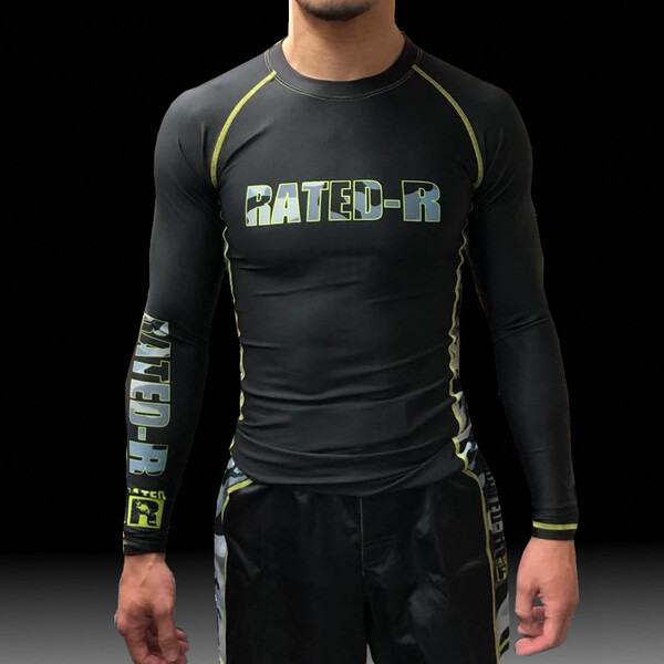 RATED-R 長袖ラッシュガード CAMO LOGO 2.0 model 黒ネオイエロー