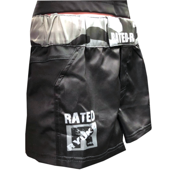 レイテッドアール ユニセックス/レディース ファイトショーツ 迷彩ロゴモデル RATED-R Unisex/Women's Fight Shorts [CAMO Logo Model] 色: 黒グレー(迷彩) Color: Black/Grey Camo 素材: ポリエステル/スパンデックス Material: Polyester/Spandex ポイント/Point: 5%! *剥がれない昇華印刷を採用。 *良質なポリエステルをチョイス。 *良質なポリエステルを使用し、ライトな履き心地を実現。 *Lサイズで僅か100グラム。 *股部、両サイドパターン部へ伸縮素材を織り込み、動き易さとフィット感を向上。メイン生地にはサテンポリエステルを採用し光沢があり洗練されたイメージを持ちながら、伸縮部分では動きを妨げないワイルドでスピーディーな動きにも対応。 *フロントはベルクロアでしっかり固定、腰紐で調整が可能。 *Fully sublimated designs with a better durability. *Made of tough Polyester and stretchable fabric. *L-size weighs ONLY 100g! *Tough and durable, Stretchable (Flex) Panels for Greater Mobility. *High Quality Velcro Strap System, Elastic Waist Band, Inner Drawstring for extra Adjustments. 【平置きサイズ】 S:ウェスト幅約31~34cm(ウエスト周り約61~63cm)/ヒップ幅40cm(ヒップ周り80cm)/丈約22cm/股下約5cm M:ウェスト幅約32cm~34cm(ウエスト周り64~68cm)/ヒップ幅45cm(ヒップ周り90cm)/丈約24cm/股下約5cm L:ウェスト幅約33.5cm~36cm(ウエスト周り約67~69cm)/ヒップ幅50cm(ヒップ周り100cm)/丈約26cm/股下約6cm *平置きにして採寸しました。サイドは伸縮素材なので少し伸びます。*後ろ向きの着用写真は、SAYAKO選手 身長153cm、体重52~54kgがSサイズを着用しております。上下セットで撮影はしておりますが、ショーツのみのお値段となります。