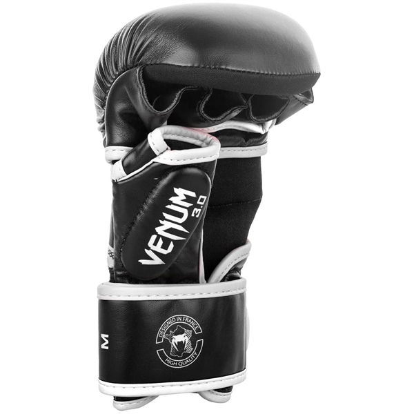 色:黒/白 Color: Black/White 素材:Skintex合皮/Skintex artificial leather MMAやグラップリングのスパーリングに適したパウンドグローブです。Skintex leatherを採用。タイ製。細かい縫い目により優れた耐久性を実現。多重構造による高い衝撃吸収。 ポイント/Point:5% Venum Challenger 3.0 sparring gloves are particularly suitable for regular MMA training. These Venum sparring gloves have a high quality injected foam which offers optimal shock absorption, for better protection of the fighter and his opponent. The shape of the Challenger 3.0 sparring gloves facilitates the execution of grappling techniques. A neoprene interior helps the sweat evacuation for more comfort during the fight. Finally, the Challenger 3.0sparring gloves have a large Velcro closure system which ensures effective wrist support, to avoid any risk of injury. TECHNICAL FEATURES • 8 oz padding • High quality injected foam guaranteeing optimal shock absorption. • Neoprene interior: sweat absorption. • Quality Velcro: for better wrist support. • Quality screen printing: unsurpassed service life. • Thumb attached to reduce the risk of injury. • Open palm.
