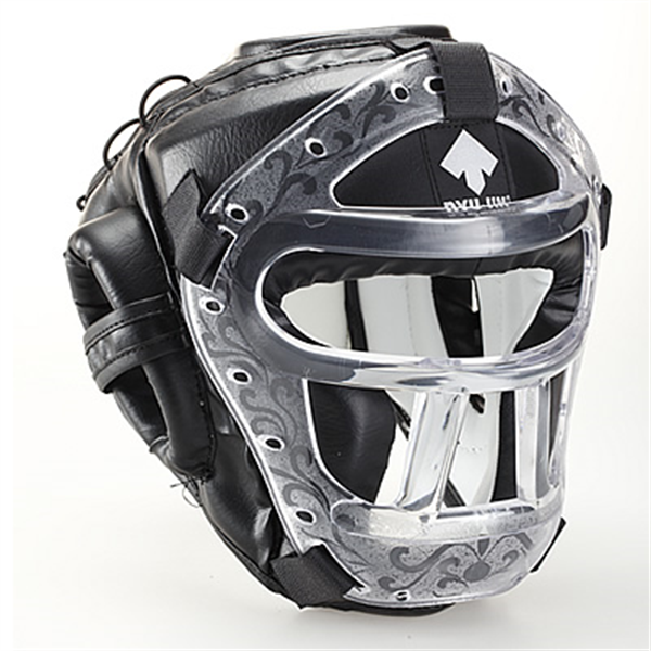 RYUJIN New Perfect Head Guard (Shield) 色/Color: 黒/Black ポイント:5%!Point: 5% 安全面を第一に考慮したヘッドギアです。 強固なポリカーボネード面と後頭部の13mm厚のパッドでしっかりガード。 頭頂部のパッドとイヤーガードを追加し安全性がさらに向上しました。 樹脂面はマジックテープ式なので簡単に取り外しができます。 また耳保護を付けて、安全面を考慮。 ポリカーボネード面が頬に接触しないように頬を保護するようにパットが付いています。 頬の保護パットのため、内側のサイズはタイトに感じます。 大人の方はLもしくはXLサイズがお勧めです。 正面のポリカーボネードは取る外すことも可能です。サイズM、L、XLがございます。 材質:合成革