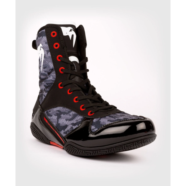 ヴェナム ボクシングシューズ Elite Dark Camo モデル VENUM Boxing Shoes Elite Dark Camo Model 色/Color:ブラック/ダークカモ Black/Dark Camo ポイント/Point: 5%! 国内送料無料!(沖縄・離島のぞく) Free Shipping! (Domestic excluding Okinawa and other islands.) 世界的に有名な選手もトレーニングで愛用! *軽量素材、通気性抜群のハニカムメッシュ使用。 *耐久性と快適性を両立させる格闘技用シューズ。 *ラバーソールで究極グリップを実現。 *2年越しのリサーチと開発を経てVENUMが 初のプロ向けボクシングシューズを製作。 Elite ボクシングシューズは、戦略的リサーチ、開発、弊社の製品エンジニアと#TeamVenum ボクシングチャンピオンたちとのコラボで誕生しました。 トレーニングやライブ試合の中で対戦テストを実施し、VENUM ファイターである ホルヘ・リナレス、 ミゲール・ベルチェット、ファン・フランシスコ・エストラーダたちがVenum Elite ボクシングシューズのサポート感、安定感、グリップを体感しました。 弊社のゴールは ‘ただ単に’ ボクシングシューズを提供するのではく、 市場で最高のものを作り出すことでした。 最も開発が複雑な要素はソールでした。 軽量、強さ、安定性、グリップといった特徴を全て組み合わせる一方、ボクサーのあらゆる方向への機敏な動きを劇的にサポートする必要がありました。 これらのダイナミックなクオリティに加えて、Venum ボクシングシューズは、ファイターたちの保護と快適さを兼ね備えなければならなかったのです。 インソールはかさばりや不快感を与えることなく、足の土踏まずにしっかりフィットするようにデザインされました。 攻撃用に最適化された Venum Elite ですが、ミッドカットシルエットの優れた足首サイドサポートにより、ファイターの距離管理を可能にします。 ディフェンス戦略の操作も簡単です。 最高に快適な ”ハニカム” メッシュがハードなトレーニング中も足の通気性を実現し、驚くべき耐久性そしてシューズの寿命を延ばします。 製造する上で一番重要視するのはパフォーマンスですが、Venum製品としてスタイリッシュさとデザインも必須ポイントです。 TECHNICAL FEATURES トリプル素材:光沢入りPUパテント、PUフレックス、メッシュハニカム ラバーアウトソール:グリップ力、耐久性、安定性アップ。 アナトミカルにデザインされたインソールで快適感アップ。 スリップ防止用接着インソール サイドの快適なサポート感 オリジナリティ溢れるカットエッジデザイン Venumの選手たちによるテスト、認証済み: ベルチェット、リナレス、エストラーダ。 *サイズは、メーカーのサイズ表を記載。手作りのため少し誤差が生じますことご了承願います。 ※サイズ交換について 未使用、破損(タグ、箱も含む)等がない場合、交換対象期間内であれば1回のみサイズ交換致します (弊社宛返送分送料はお客様ご負担となります。弊社から発送分は弊社が負担致します)。 ・タグは絶対に外さないで下さい。 ・商品のボックスに直接伝票を貼らないで下さい。 ・新品同様でない場合は交換できません。 ・在庫状況により交換品がご用意できない場合や商品返送及び交換依頼から交換品納品まで一定のお時間を頂く場合がありますこと予めご了承ください。