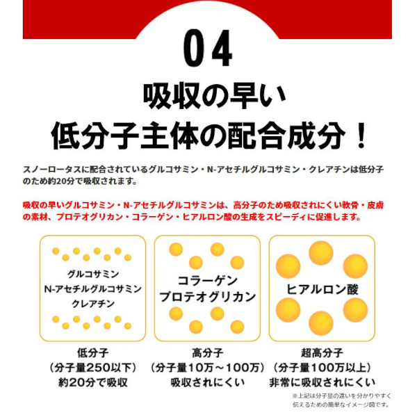 SNOW LOTUS 4105mg Revive Star 60-piece pack 究極ジョイント系サプリメント。足を酷使するアスリートの方に大人気!関節ケア、筋肉リカバリー、ハリツヤ・たるみ同時サポート。究極ジョイント成分+クレアチン1000mg!軟骨・ハリツヤ成分のグルコサミン、N-アセチルグルコサミン、コンドロイチン含有エキス末、MSMに筋肉成分のクレアチン、更にマレートおよび雪蓮花エキス末を独自に配合。美味しいライチフレバーの顆粒タイプなのでそのままダイレクトに口に入れても水などに溶かして飲んでもOK。おいしく飲んでイキイキと、そしてスムースに。足、腰、肩を酷使するアスリートからハツラツとした美と健康を追求する女性、生涯パワフルな”歩み・走り・登り”を目指すシニアの方々まで、幅広く皆様へおすすめできる商品です。リハビリ病院などでもご愛用・高評価! 内容量:60本入パック (5.5g x 60本) 顆粒・ダイレクトインタイプ 日本製 Made in Japan アンチドーピング認証取得済み ポイント対象外商品:この商品にはポイントは付与されません。 全能ジョイント系サプリメント ◆関節・筋肉・ハリツヤ・エナジー系成分7種類4105mg配合! ◆軟骨成分X筋肉成分 同時配合・相乗パワー! ◆唯一無二!2種類のグルコサミンをダブル配合!ダブルパワー! ◆筋肉成分の王者・クレアチンを1000mg配合により好循環サイクル! ◆天然素材”雪蓮花(スノーロータス)を配合、フルーティなライチ味で美味しい! 高品質で安心・安全 ◆アンチドーピング認証取得済で安心・安全 ◆日本GMP認定工場にて製造の国産で安心 ◆一回飲み切り密封スティックタイプで衛生的 ◆筋肉成分クレアチンを軟骨成分グルコサミンと一緒に飲むことで筋肉だけでなく、関節機能への相乗作用が期待できることに関し特許が取得されております。(特許権者、スノーロータスに配合しているドイツ”アルツケム社製”クレアチン、日本発売元 ユニテックフーズ株式会社) こんな方におすすめ ◆足・腰・肩などを酷使するアスリート ◆健康と美を追求する女性 ◆生涯パワフルな歩き・走り・登りを追求するシニアの方々 お召し上がり方 ◆1日1~3本を目安にお飲みください。 ◆そのままダイレクトに、または水などと一緒にお飲みください。 ◆ ライチフレーバーのスポーツドリンク感覚でもお飲みいただけます。お好みで100〜500mlの水に入れ、シェイクしてお召し上がりください。 ◆ ミネラル(カリウム)を配合しておりますので、運動時やウォーキング時にもオススメです。 【ご注意】 スノーロータスには天然素材 ” 雪蓮花(スノーロータス)” を配合しています。部分的に固まることや色調が変化することがありますが、品質には問題ありません。固まっている場合は、スティック開封前に指でほぐしてからお召し上がりください。