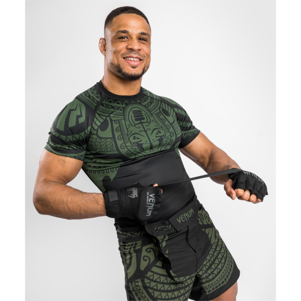 色:ブラック/カーキ Color: Black/Khaki 素材:87% ポリエステル/Polyester 13% ポリウレタン/Elastane ロゴやデザインは染めプリントなので剥れたり割れたりしません。抗バクテリア生地を採用。縫い目も強化スティッチで耐久性に優れています。 ウエストにはシリコンゴムの滑り止めが付いていてずり上がってきません。 ポイント/Point:5% コンプレッションシステム: 使用する筋肉への循環を改善し、回復時間を短縮します。 メッシュインサート: 高い通気性を確保、補強された縫い目で丈夫なつくり ラッシュガードがずり上がるのを防ぐゴムバンド付きウエストバンド 30°で洗ってください:アイロンやタンブラー乾燥はしないでください。 実寸サイズ M-胸回り Chest:100 - 103 腰回り Hip:98 - 101 身丈 Length:53 L-胸回り Chest:104 - 107 腰回り Hip:102 - 105 身丈 Length:54.5 DESCRIPTION Perfect for MMA, grappling or wrestling, This NoGi 3.0 Rashguard is a magnificent. This compression shirt optimizes recovery. It also provides a protective role by limiting friction to the skin, something that often goes hand in hand with combat sports. The silicone band located at the waist prevents the Rashguard from rising throughout training. Specifically adapted to the constraints of combat sports, rashguards remain multidisciplinary training outfits that will delight any athlete looking for performance! This model measures 180 cm, weighs 75 kg and wears a size M product. His chest measurement is 99 cm and his waist measurement is 78 cm. TECHNICAL FEATURES Ideal for MMA, grappling, or wrestling.Material: 87% Polyester - 13% ElastaneStretchy and very durable fabric.Silicone support band located at the waist. Reinforced and ergonomic seams. Machine wash at 30 ° C, do not wash, do not tumble dry.
