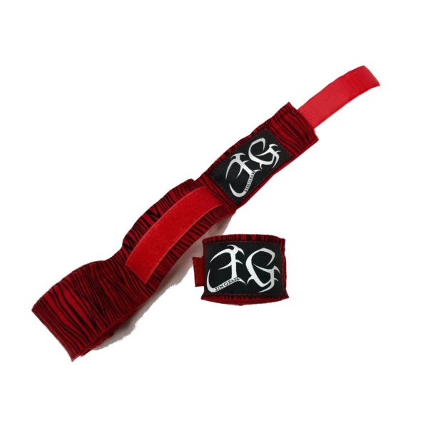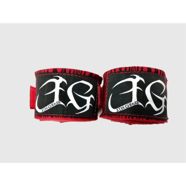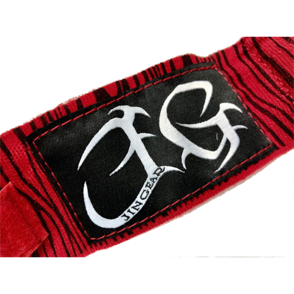 JIN GEAR Hand Wraps 素材/Material : ポリエステル綿混 Polyestel/Cotton mix 、伸縮。 長さ/Length : 3m 色:赤(ベース生地)/黒(ゼブラプリント) Color : Red(Base Fabric) / Black(Zebra Printing)/ ちょうど良い伸縮感で巻きやすいです。格闘技で拳を守るため、またはグローブの下に巻くバンデージ(バンデージ)として。