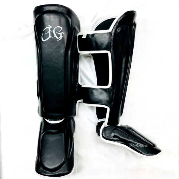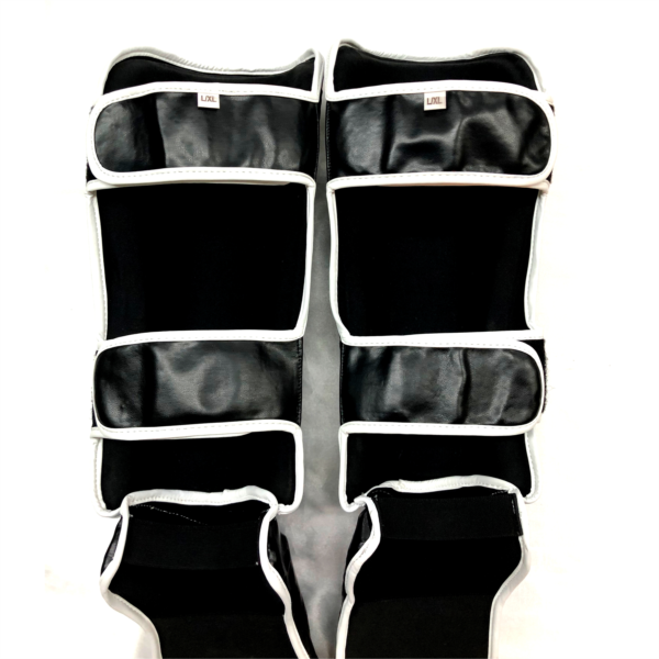 JIN GEAR Shin Guards (Leg Guards) Tribal Model Instep and Shin Protector Synthetic Leather 特徴的なデザインとこだわりの素材と設計を併せ持ったJIN GEAR レッグガードのハイスタンダードモデル。 色/Color:黒/白 Black/White 素材/Material: 合成皮革/Synthetic Leather ポイント/Point: 5% *格闘技に適した高級合成皮革を採用。 *耐衝撃性が高く多重構造の高密度フォームが脚の甲とすねの保護と高い耐久性を実現。 *日本でデザインされ、品質を妥協することなくベストプライスを目指した、シンセティックレザーでハイクオリティーなレッグガード。 *内張りにも特殊な生地を採用し、汗などによる不快感を予防。 *後ろ側はベロクロアベルトを2本、足首に太ゴム、土踏まず部分にも太ゴムを採用し、しっかりとフィット感を実現。 *クオリティーの高い合成皮革の使用により、優れた着用感と耐久性に加え、抜群のコスパも実現。 *初心者から上級者までの幅広い選手に最適な高性能シンガード。 *JIN GEARのトライバルロゴ。 *The supreme-quality synthetic leather which is best for martial arts training. *Featuring a high density and multi-layer foam padding for enhanced shock absorption and long-lasting leg protection. *Good value for the price but with no concession on the quality, the let guards are designed in Japan and the perfect choice to learn kicking! *Unique smooth fabric adopted as lining cloth for extreme comfort. *2 velcro calf straps and 2 wide elastic bands on heel cord and arch to keep them locked in place during your training. *Their high-quality synthetic leather construction will bring you great fighting experience, strong durability at great price. *Excellent for all practitioners from beginners to experts. *JIN GEAR Tribal Logo.