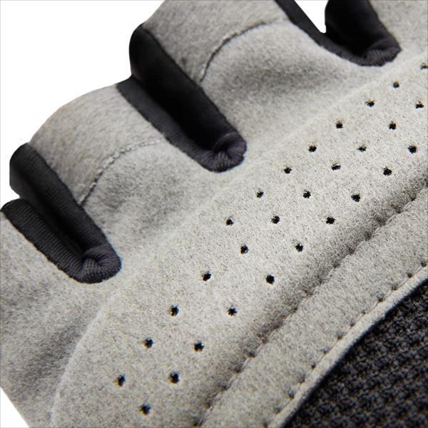 リーボック フィットネスグローブ REEBOK Fitness Gloves 色:ブラック/ホワイト Color: Black/White 素材: ポリエステル 約82%、合成皮革約10%、スパンデックス約5%、ナイロン約3% Material: 82% Polyester, 10% PU, 5% Elastane, 3% Polyamide ポイント/Point: 5% リーボックのフィットネスグローブはあらゆるトレーニングにおいて心地の良いグリップを提供しトップパフォーマンスを引き出します。掌の部分には、薄手のパッドが入った人工スウェードと通気性がよく丈夫なメッシュ生地を採用することにより、ウエイトや自重を使ったワークアウト時に高い保護力と同時に自然なフィット感を実現。 Speedwick技術に基づいて設計されたこのグローブはその通気性によりワークアウト時の熱や湿気を抑えるのでトレーニングへの集中を妨げません。 *親指の部分の生地が汗を防ぎます。 *掌のパッド入りの人工スウェード生地が保護とグリップを高めています。 *掌部分の通気性が快適と衛生を両立。 *Speedwick技術による高い通気性がクールでドライを保ちます。 *ベロクロア式リストベルトが手首の部分でしっかりと固定。 Fit for any training regime, Reebok Fitness Gloves deliver comfort and grip for top performance. Made from breathable Lycra with an Amara suede palm, the gloves combine protection with a natural feel for weighted and bodyweight workouts. Engineered with integrated Speedwick Technology, the Fitness Gloves encourage airflow for cooler and dryer workouts; focussing your attention to pushing each set. *Integrated thumb towelling to wipe away sweat *Padded suede effect palm for protection and grip *Palm ventilation boosts comfort and hygiene *Speedwick tech encourages airflow, keeping you cool and dry *Velcro wrist strap to keep them locked in place during your training.