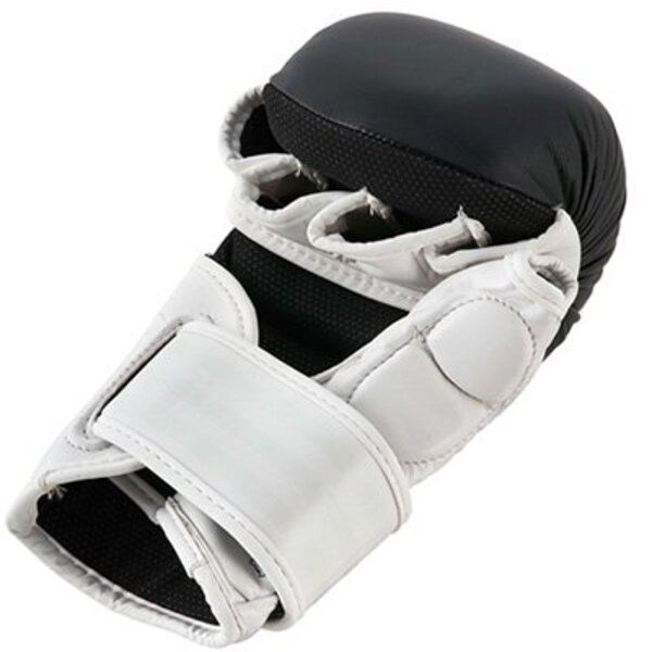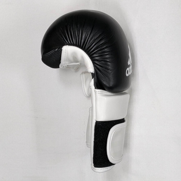 アディダス MMAスパーリング パウンド グローブ adidas MMA Training Grappling Gloves Color:黒白 Black/White 素材/Material: 本革・ウレタン/Leather, Urethane ポイント/Point: 5% MMA/総合格闘技の練習やスパーリングに最適なオープンフィンガー/パウンドグローブです。 *新しく開発したIMF機能による高い衝撃吸収性。 *耐久性の高い本革を採用。 *ベロクロアとしっかりとしたバンドにより最適なフィット感を実現。 Sparring and Training MMA/Open-finger gloves. *Made of high quality Leather. *Newly developed IMF feature for shock absorption and perfect fit. *Finger with reinforcement and palm also lined from underneath. *Extra padding below punch area. *Velcro and rigid band strap closure for optimal support.