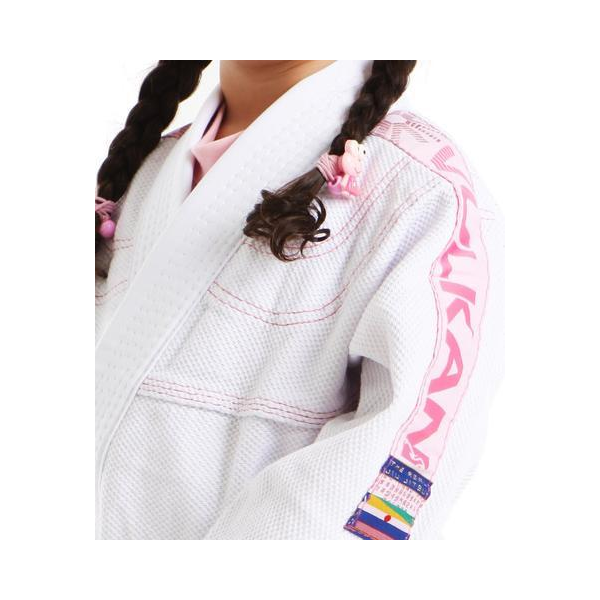 Baby & Kids/ベイビー&キッズ Pro Light Model プロライトモデル 種類:シングルウィーヴ/ Single weave コットン100% Cotton 防縮加工済み/Pre-shrunk 色/Color:白/ピンク *白帯付き。 White belt included. 限定品につき在庫のみの販売となります。 サイズ 適応身長 M00:80cm - 100cm,体重約~18kg (これらはあくまで目安です。) サイズチャート: M00サイズ-上着- 胸幅:35cm、着丈:42cm、袖先~袖先(裄):82(41)cm、袖口幅:10.5cm ズボン- ウエスト幅:36cm、ズボン丈:51.5cm、股下:38cm 重さ:550g *この道着の生地は柔らかく薄手のシングル生地ですので、ほんの少し横に伸縮します。