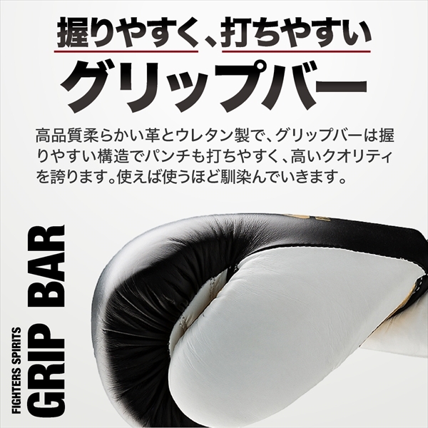 FIGHTERS SPIRITS ボクシンググローブ プロ仕様 本革 ブラック/ホワイト/ゴールド
