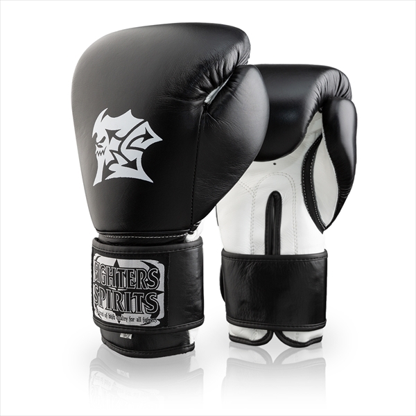 FIGHTERS SPIRITS Boxing Gloves Standard Model Punk ver. Real Leather 色:ブラック/ホワイト Color: Black/White 素材/Material: 本革/Genuine leather ポイント/Point: 5% 国内送料無料!(沖縄・離島のぞく) Free Shipping! (Domestic excluding Okinawa and other islands.) スタンダードな仕様で柔らかい牛革とウレタンを使っており、とても使いやすいグローブとなっております。牛革はGenuine natural grain cowhide leather(ジェニュインクナチュラルグレインカウハイドレザー)を使用し、職人の手作業で作っており、Hand molding(ハンドモウルディング)製作です。リスト部分を厚くしており、パンチを打つ際や、スパーリングパートナーからの打撃を手首で受けた際にも守ります。グリップバーは握りやすく手にフィットし、手のひら側に空気穴が設けられており、内側のナイロン素材を使っているので通気性を重視しております。ボクシング、ムエタイなどあらゆる打撃格闘技に使えるグローブです。もちろん、スパーリング以外にもミット打ち、サンドバッグ打ちなどにおススメのグローブです。 The glove is made of soft cowhide leather and urethane with standard specifications, making it very easy to use. The leather is genuine natural grain cowhide leather, hand molded, and hand-made by craftsmen. The wrist portion is thickened to protect against punches and blows from sparring partners when blocking with the wrist. The grip bar is easy to grip and fits the hand, and air holes on the palm side and the inner nylon material is provided for ventilation. These gloves can be used for boxing, Muay Thai, and all other striking martial arts. Of course, in addition to sparring, these gloves are also recommended for mitt training, sandbag training, etc.