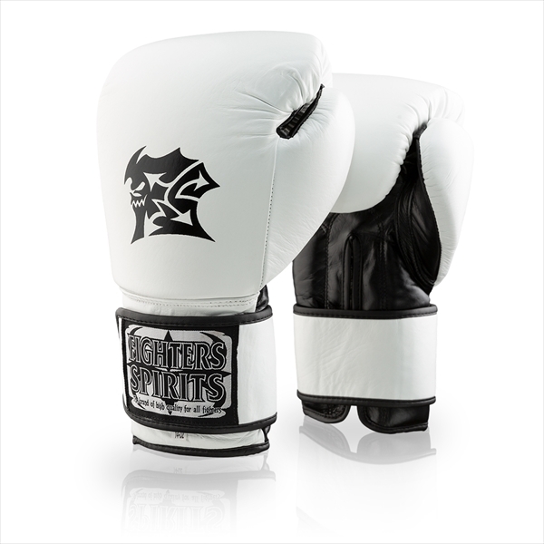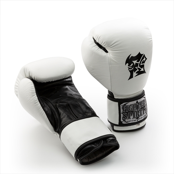 FIGHTERS SPIRITS Boxing Gloves Standard Model Punk ver. Real Leather 色:ホワイト/ブラック Color: White/Black 素材/Material: 本革/Genuine leather ポイント/Point: 5% 国内送料無料!(沖縄・離島のぞく) Free Shipping! (Domestic excluding Okinawa and other islands.) スタンダードな仕様で柔らかい牛革とウレタンを使っており、とても使いやすいグローブとなっております。牛革はGenuine natural grain cowhide leather(ジェニュインクナチュラルグレインカウハイドレザー)を使用し、職人の手作業で作っており、Hand molding(ハンドモウルディング)製作です。リスト部分を厚くしており、パンチを打つ際や、スパーリングパートナーからの打撃を手首で受けた際にも守ります。グリップバーは握りやすく手にフィットし、手のひら側に空気穴が設けられており、内側のナイロン素材を使っているので通気性を重視しております。ボクシング、ムエタイなどあらゆる打撃格闘技に使えるグローブです。もちろん、スパーリング以外にもミット打ち、サンドバッグ打ちなどにおススメのグローブです。 The glove is made of soft cowhide leather and urethane with standard specifications, making it very easy to use. The leather is genuine natural grain cowhide leather, hand molded, and hand-made by craftsmen. The wrist portion is thickened to protect against punches and blows from sparring partners when blocking with the wrist. The grip bar is easy to grip and fits the hand, and air holes on the palm side and the inner nylon material is provided for ventilation. These gloves can be used for boxing, Muay Thai, and all other striking martial arts. Of course, in addition to sparring, these gloves are also recommended for mitt training, sandbag training, etc.