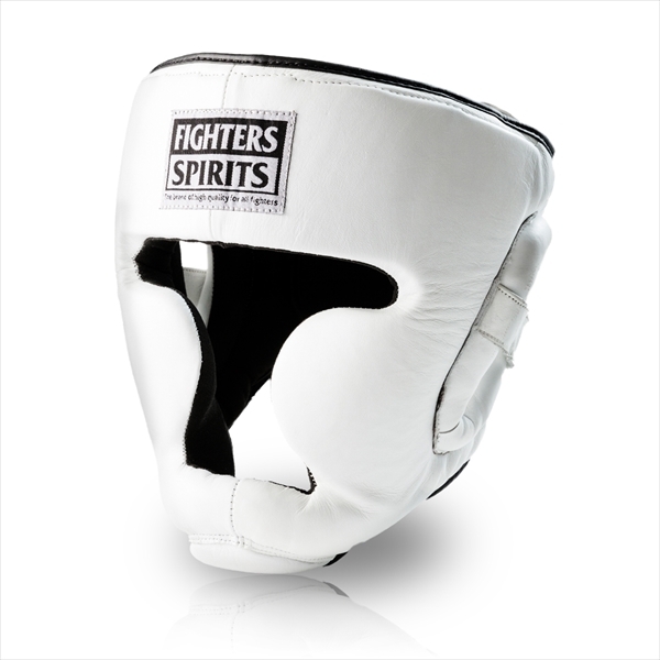 FIGHTERS SPIRITS Headgear Standard Model 色:ホワイト Color: White 素材/Material: 本革/Genuine leather ポイント/Point: 5% 国内送料無料!(沖縄・離島のぞく) Free Shipping! (Domestic excluding Okinawa and other islands.) スタンダードで安全性が高いヘッドギアです。頬部分、額部分は肉厚がありながら視界は見やすい作りです。牛革はGenuine natural grain cowhide leather(ジェニュインクナチュラルグレインカウハイドレザー)を使用しております。内側にはスウェード素材を使っており、頭頂部を紐で調整できるので、スパーリング中も安心して使用できます。チンガードで顎を保護でき、イヤーガードは蹴りの際に爪先が入るのを防ぎ、全体的に肉厚も厚いので競技者を怪我から守ります。ベロクロテープ式で着脱簡単。 This headgear is the standard model with high safty. The cheek and forehead portions are thick, yet the visibility is easy to see. The outer material is Genuine natural grain cowhide leather. The inside is made of suede material, and the top of the head can be adjusted with a cord to provide security while sparring. The chin guard can protect the chin, the ear guards prevent the toes from entering during kicking, and the overall thickness protects the competitor from injury. The Velocro tape system makes it easy to put on and take off.