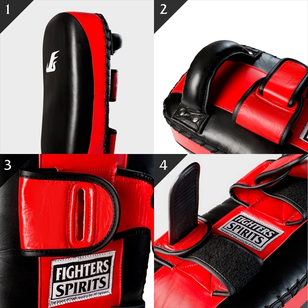 ファイターズスピリッツ キックミット カーブ 本革 2個1組 ブラック/レッド