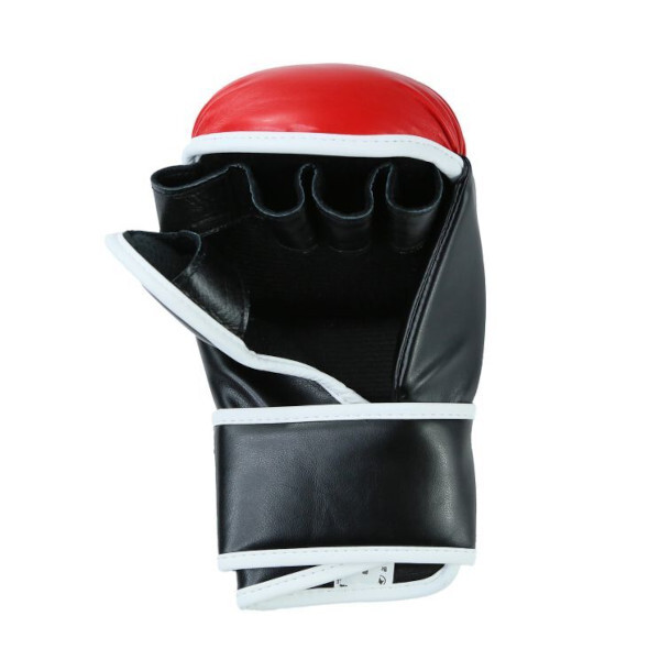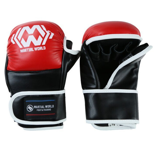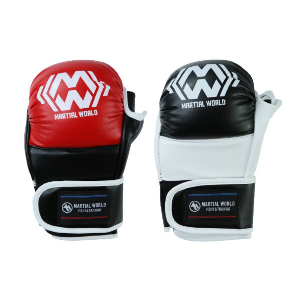 マーシャルワールド オープンフィンガー/パウンド グローブ セーフティモデル Martial World MMA Pound Gloves Safety Model アマチュアパンクラス公認 Amateur Pancrase-approved gloves 色/Color:レッド/ブラック Red/Black 素材/Material: 合成皮革/PU ポイント/Point: 5% *練習、試合と安全に使用ができる万能グローブ。 *親指ガードや鉄槌部分にもパッドがある安全設計。 *オーバーハンドフックや鉄槌も安心して使用できます。 *掴みやすさ、打撃感にも拘りウレタンのクッション性が抜群。 *Excellent gloves that can be used safely for both practice and matches. *Safe design with padding on the thumb guard and hammer hand area. *Overhand hooks and hammer strikes can also be used without hesitation. *Urethane cushioning provides excellent grip and striking feel. 重量/Weight: M: 約/Approx. 300g/組/Pair L: 約/Approx. 340g/組/Pair サイズ/Size: M: 高さ/Length 21cm x 幅/Width 12cm L: 高さ/Length 22cm x 幅/Width 13cm サイズ参考目安: Mサイズ推奨:成人男性手のサイズ小さめ〜標準 Lサイズ推奨:成人男性手のサイズ標準より大きい